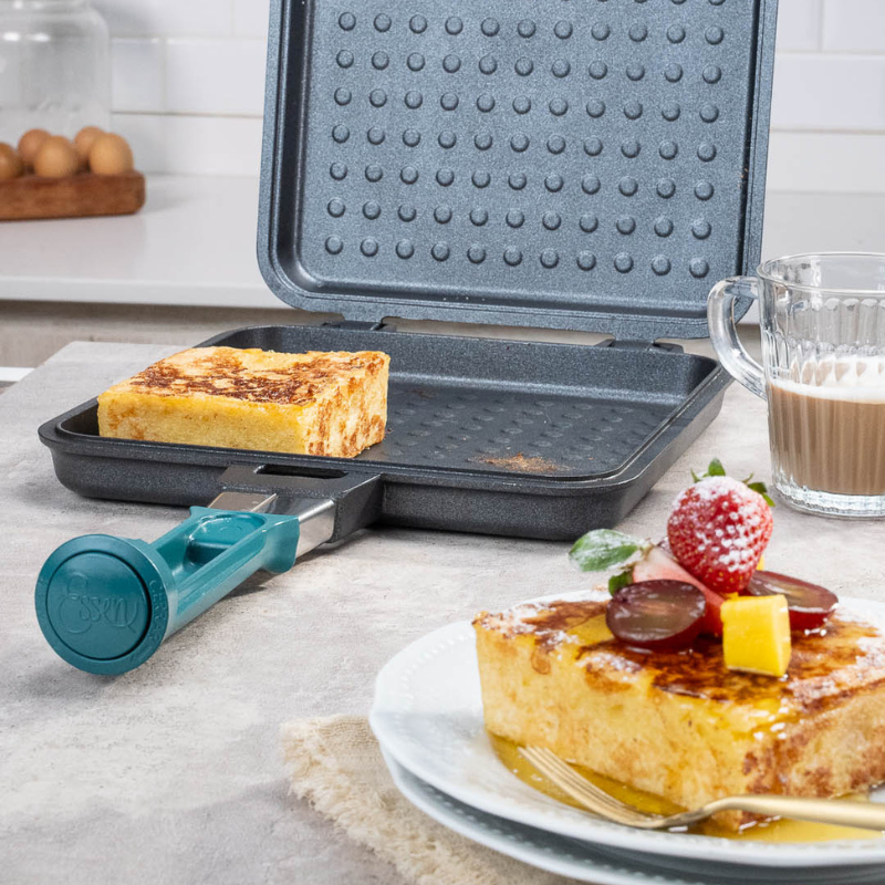 Calentamos la Sartén tapada a Fuego Medio por 2 minutos. Colocamos las rodajas de pan y cocinamos de un lado a Fuego Medio hasta que se doren; damos vuelta y tostamos del otro lado.